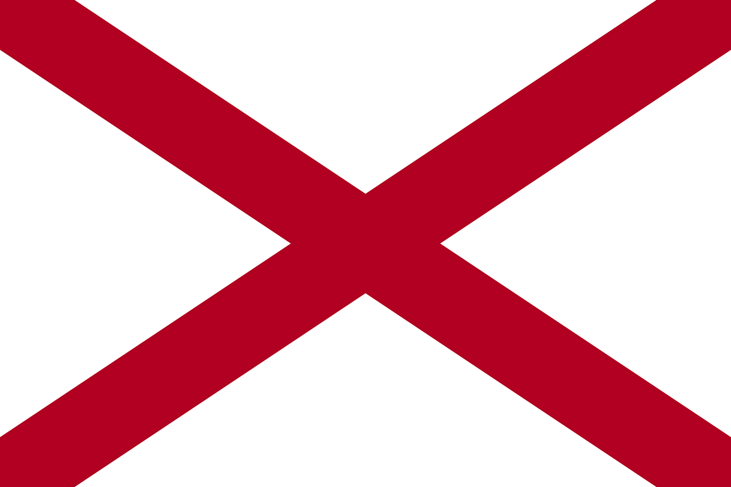 Someone gave the State of Alabama a box to check with the question “DO YOU WANT TO CREATE A FLAG?” and this was the response. That, or Alabama is unable to write its name and has to sign everything with a big red X. In general, it is a poor idea to pick as your flag an image that could be regarded as a negative answer to the question, “Should you visit Alabama?”